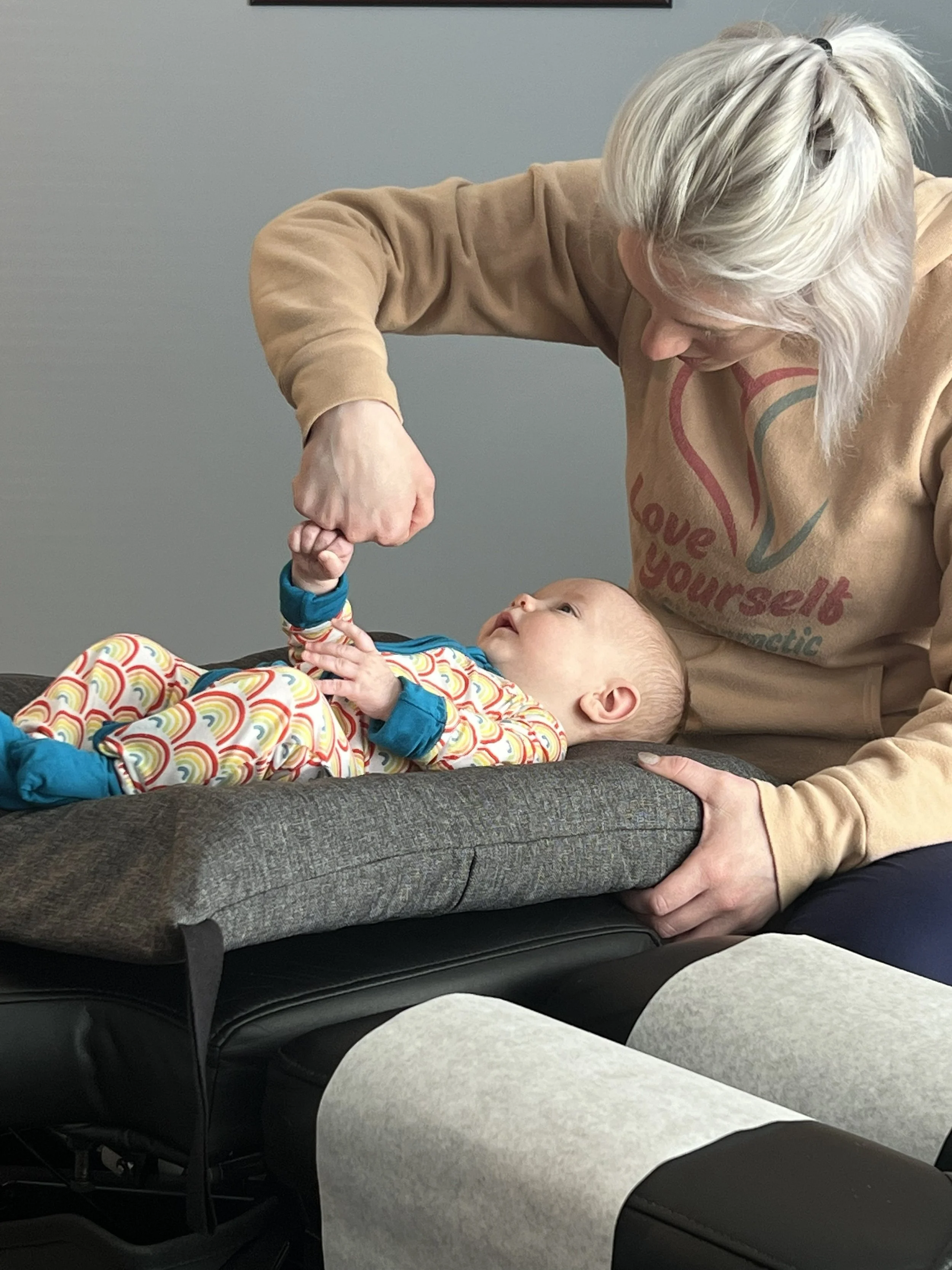 Dr. Maggie at Love Yourself Chiropractic is Pediatric certified through the ICPA. Pediatric chiropractic care for infants is a gentle, specific approach designed to support your baby’s developing nervous system from day one. Using light, precise adjustments - no more pressure than testing the ripeness of a tomato - we help release tension that may results from birth or early positioning. This can support improved comfort, feeding, latching difficulties, sleep, digestive disturbances, and overall regulation, creating a calm foundation for healthy growth and development in those critical early stages of life.
